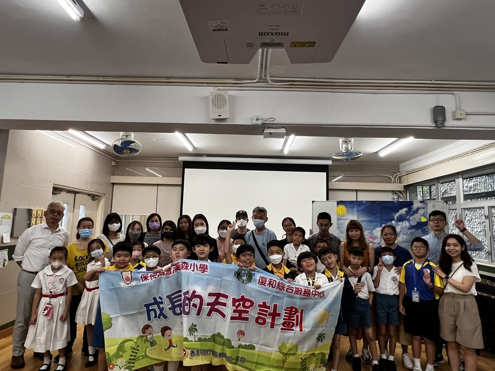 成長的天空計劃(小學)」包含「發展課程」和「輔助課程」,目的在於協助學生掌握面對逆境的知識、技能和態度。「發展課程」是一個以抗逆理念為基礎的輔導課程,對象是全體的小四至小六學生。「輔助課程」是一系列的小組、歷奇親子活動,對象是有需要的小四學生。