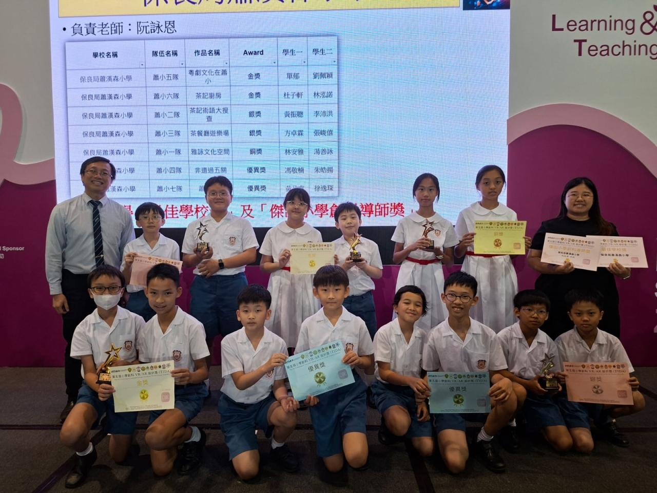 蕭小學生參加了本年度由AiTLE 資訊科技教育領袖協會舉辦的「第五屆小學創科 VR / AR 設計獎(TIDA5)」,學習利用Cospaces程式發揮創意,配合「非遺」、「茶餐廳文化、漁農文化、海洋生態、防騙、資訊保安」為主題,設計出沉浸式3D虛擬實體的遊戲。學生在課堂中獲益良多,更在比賽中獲不同獎項,本校亦同時榮獲「最佳學校獎」及「傑出小學創科導師獎」!