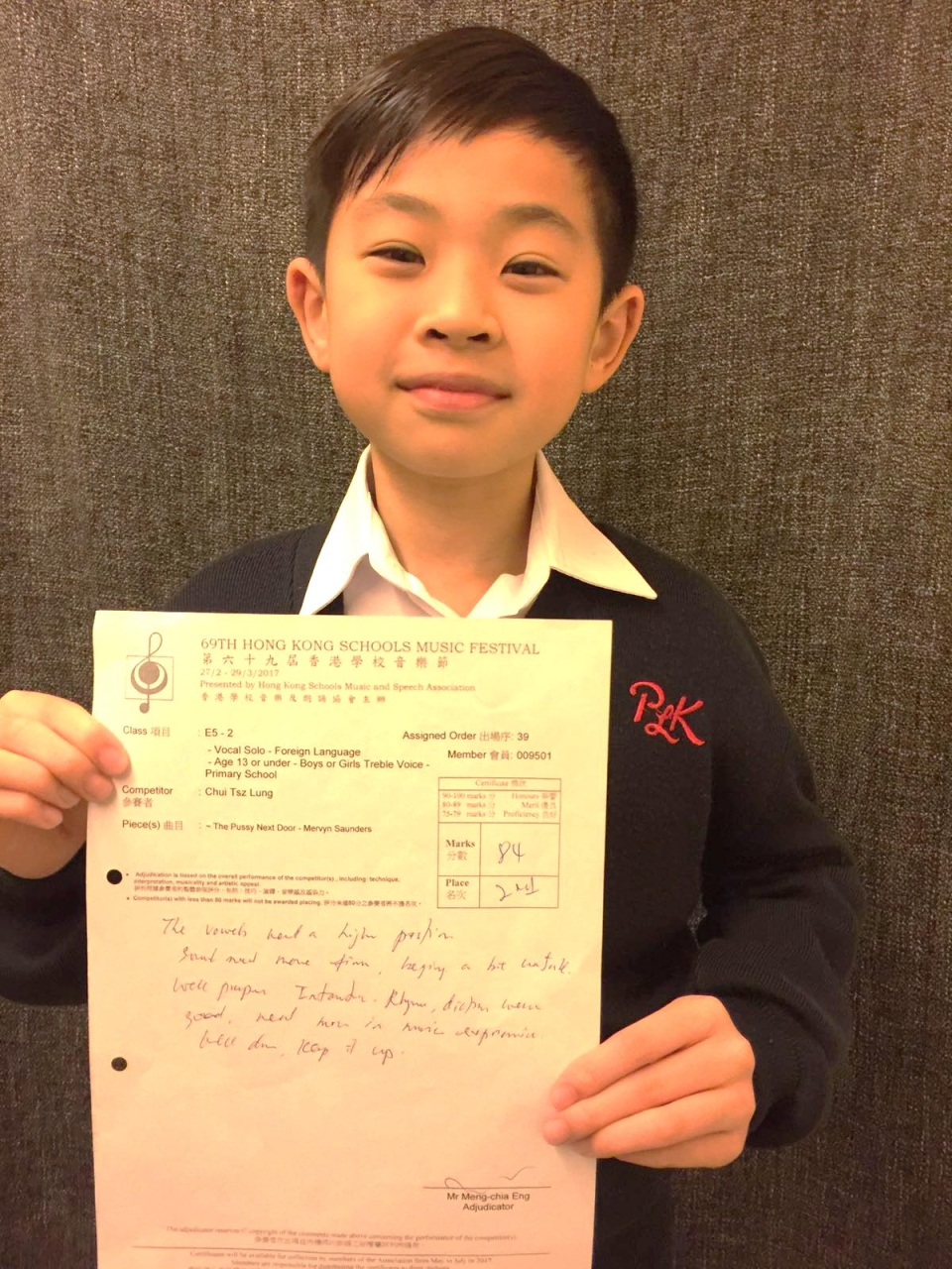 聲樂獨奏-男童聲或女童聲-小學(13歲或以下) |
