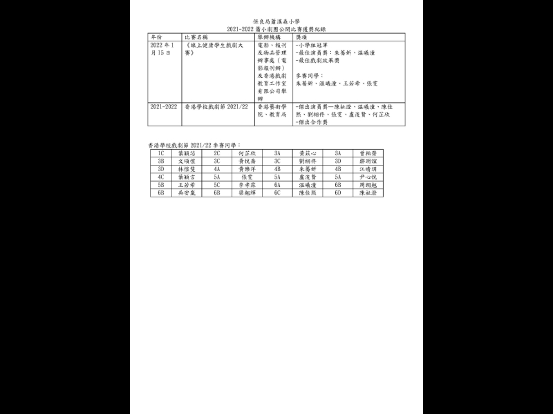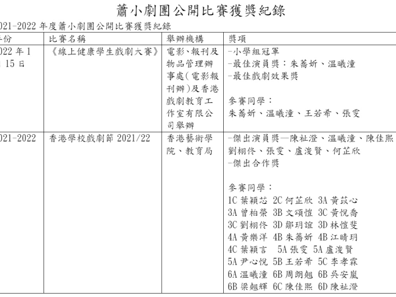 2021-2022蕭小劇團公開比賽獲獎