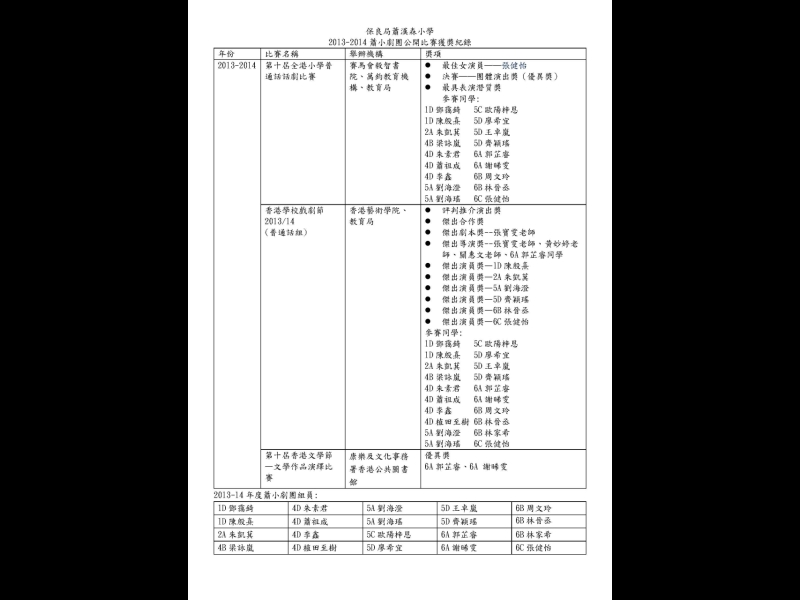 2013-2014蕭小劇團公開比賽獲獎