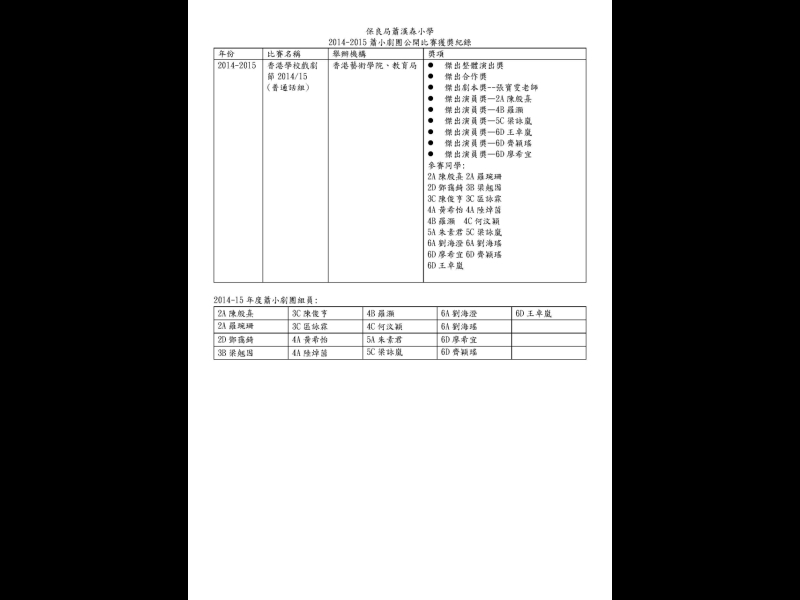 2014-2015蕭小劇團公開比賽獲獎