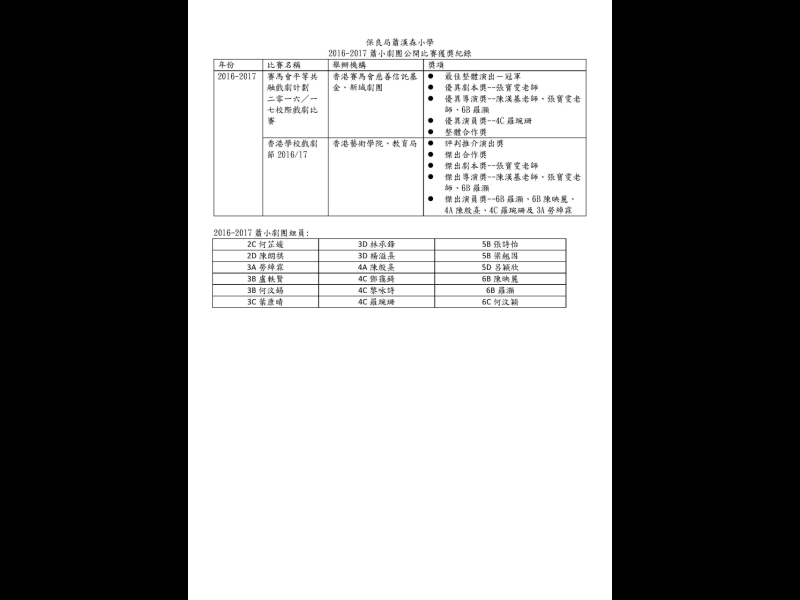 2016-2017蕭小劇團公開比賽獲獎