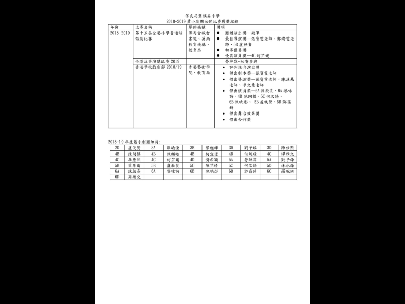 2018-2019蕭小劇團公開比賽獲獎