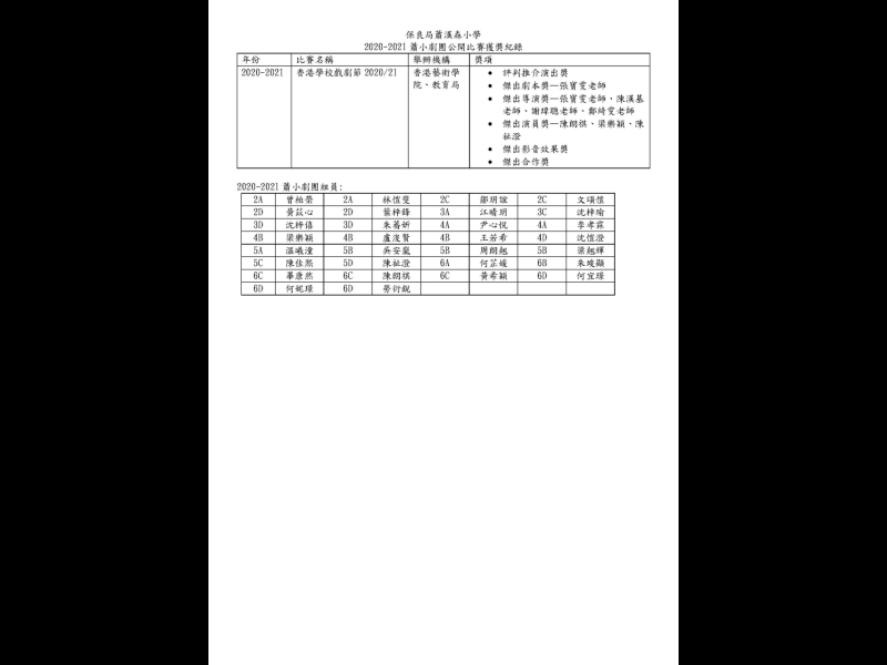 2020-2021蕭小劇團公開比賽獲獎