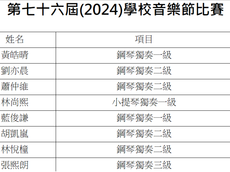 第七十七屆(2025)學校音樂節比賽