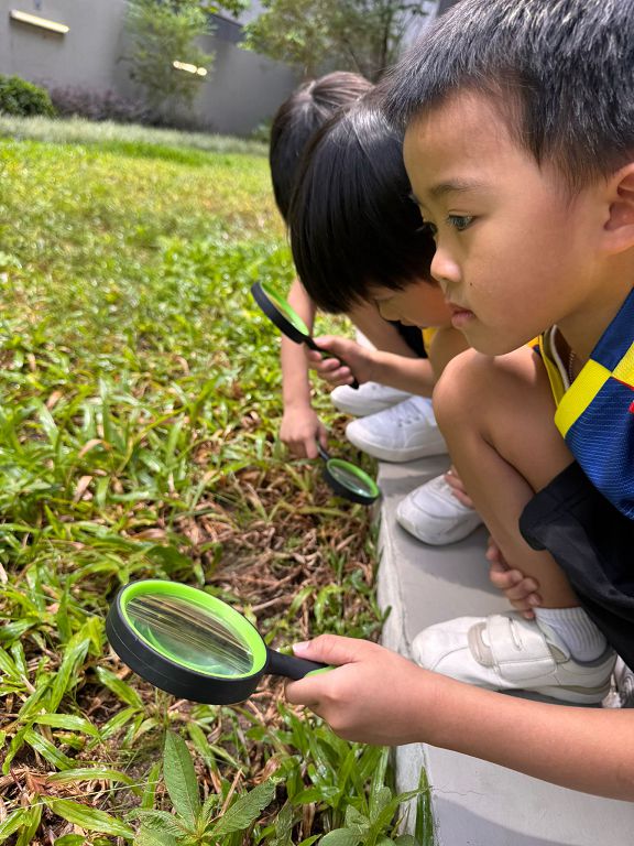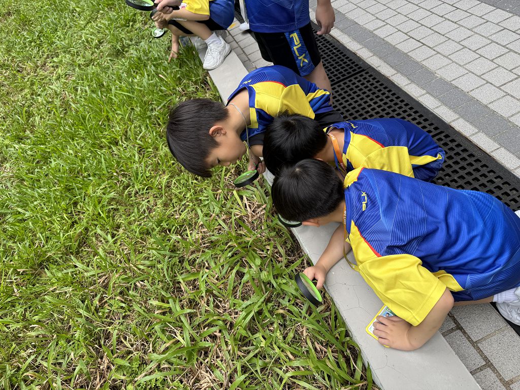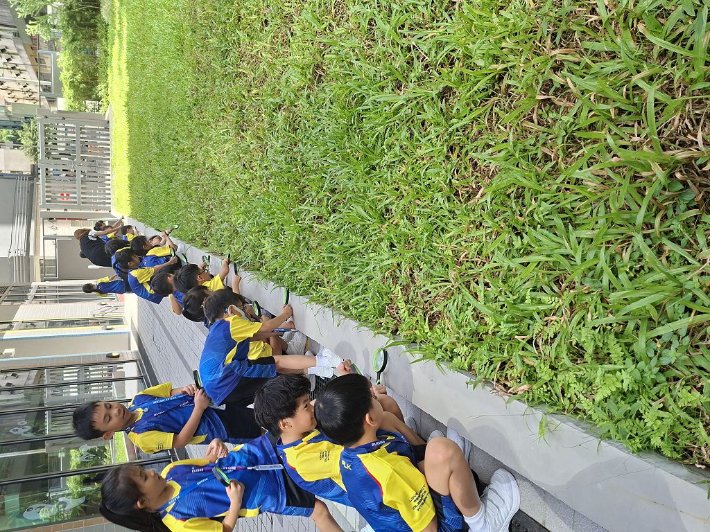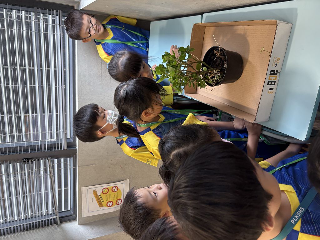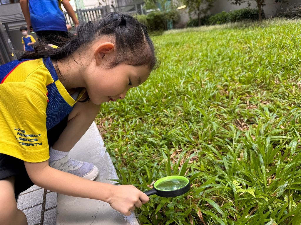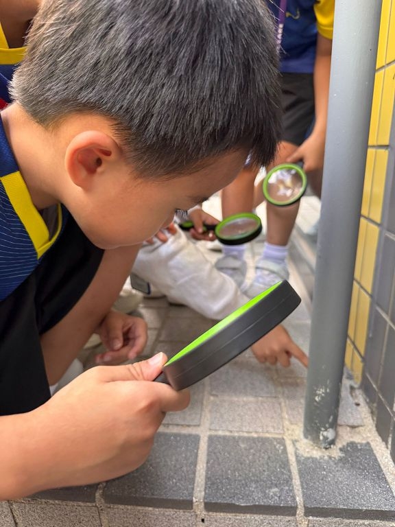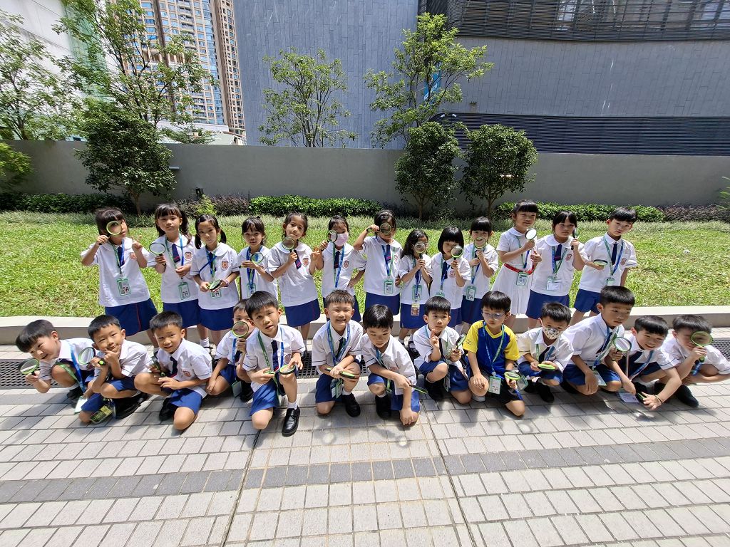 一年級科學課上,同學化身小小科學家,利用放大鏡尋找校園內的動植物。課室內亦有兩位綠色的「嘉賓」,同學都能細心觀察,在探究活動冊上畫出不同的葉,記錄不同葉子的形狀和顏色呢!