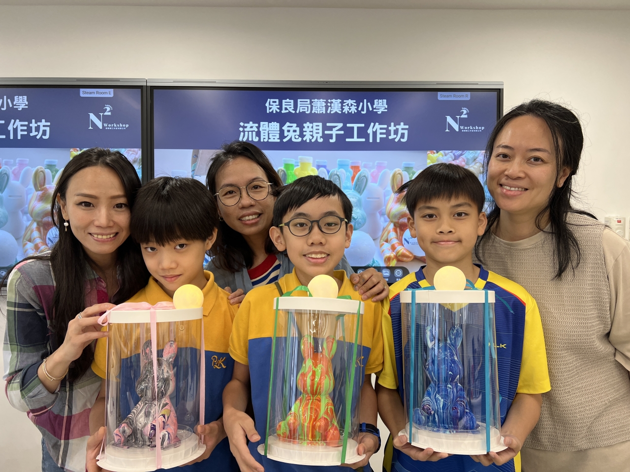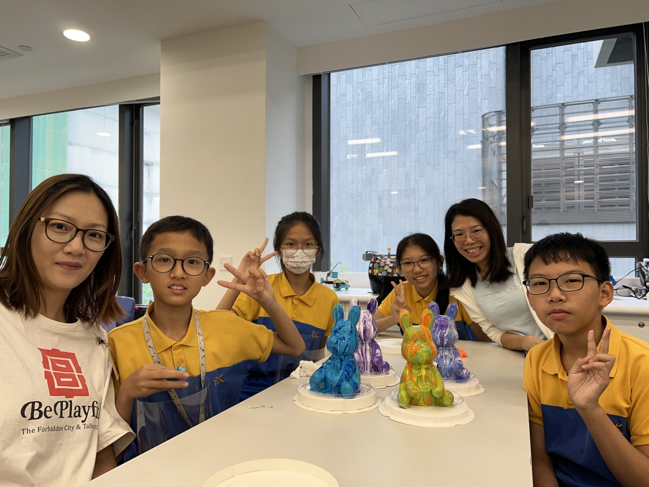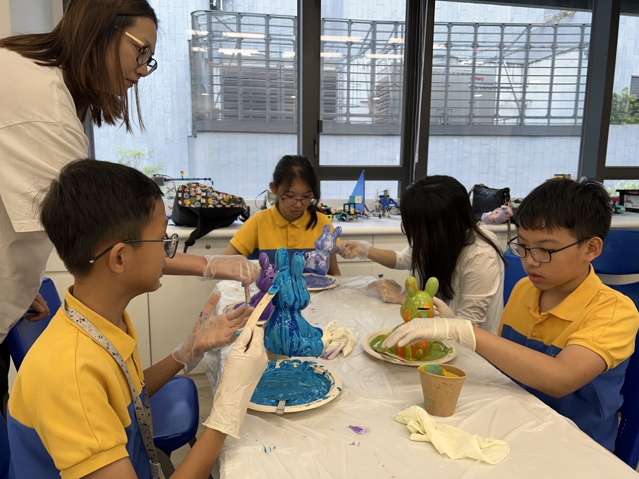 學校於5月10日舉辦流體兔燈錢箱親子工作坊,家長及學生一起合作,以不同的方式流動顏料,創造出獨特紋理。燈箱上所有的花紋、顏色都獨一無二,就像每個人一樣,都具有獨特的價值以及不同之處。