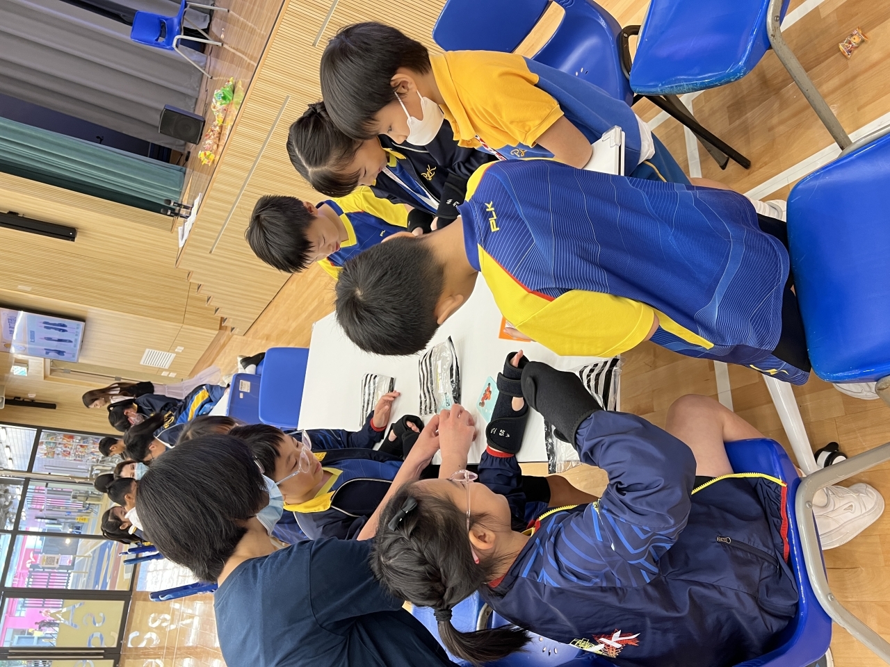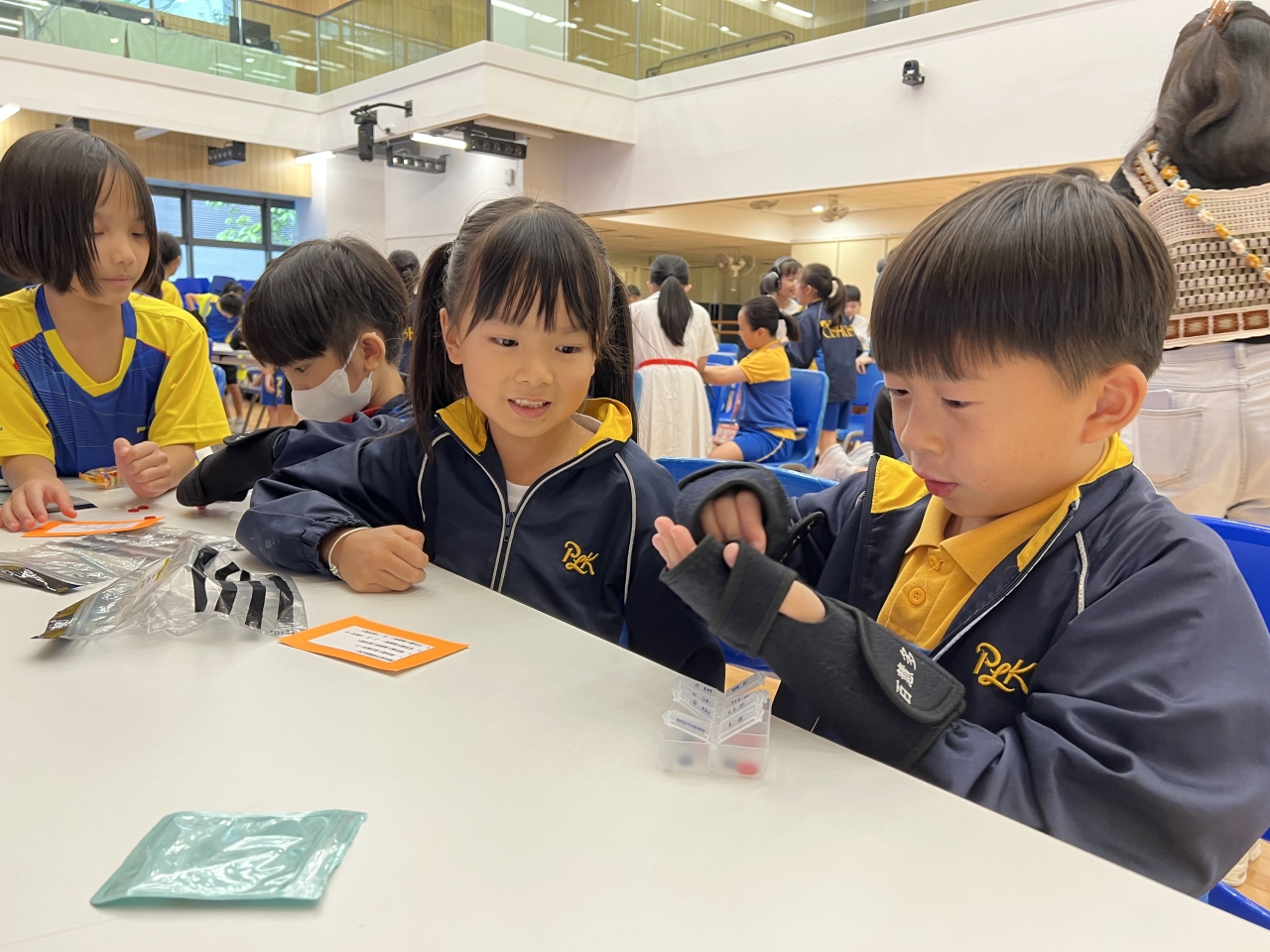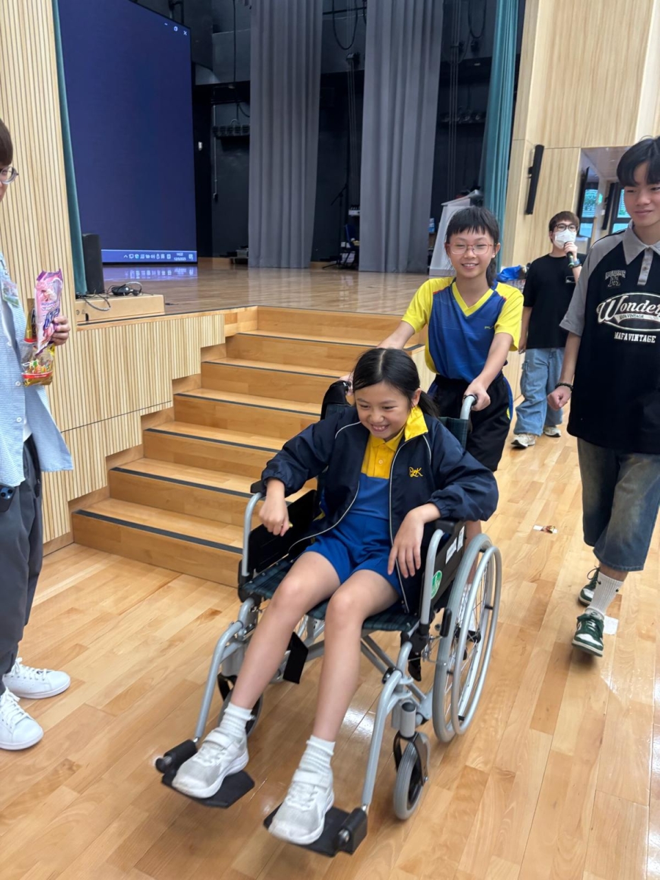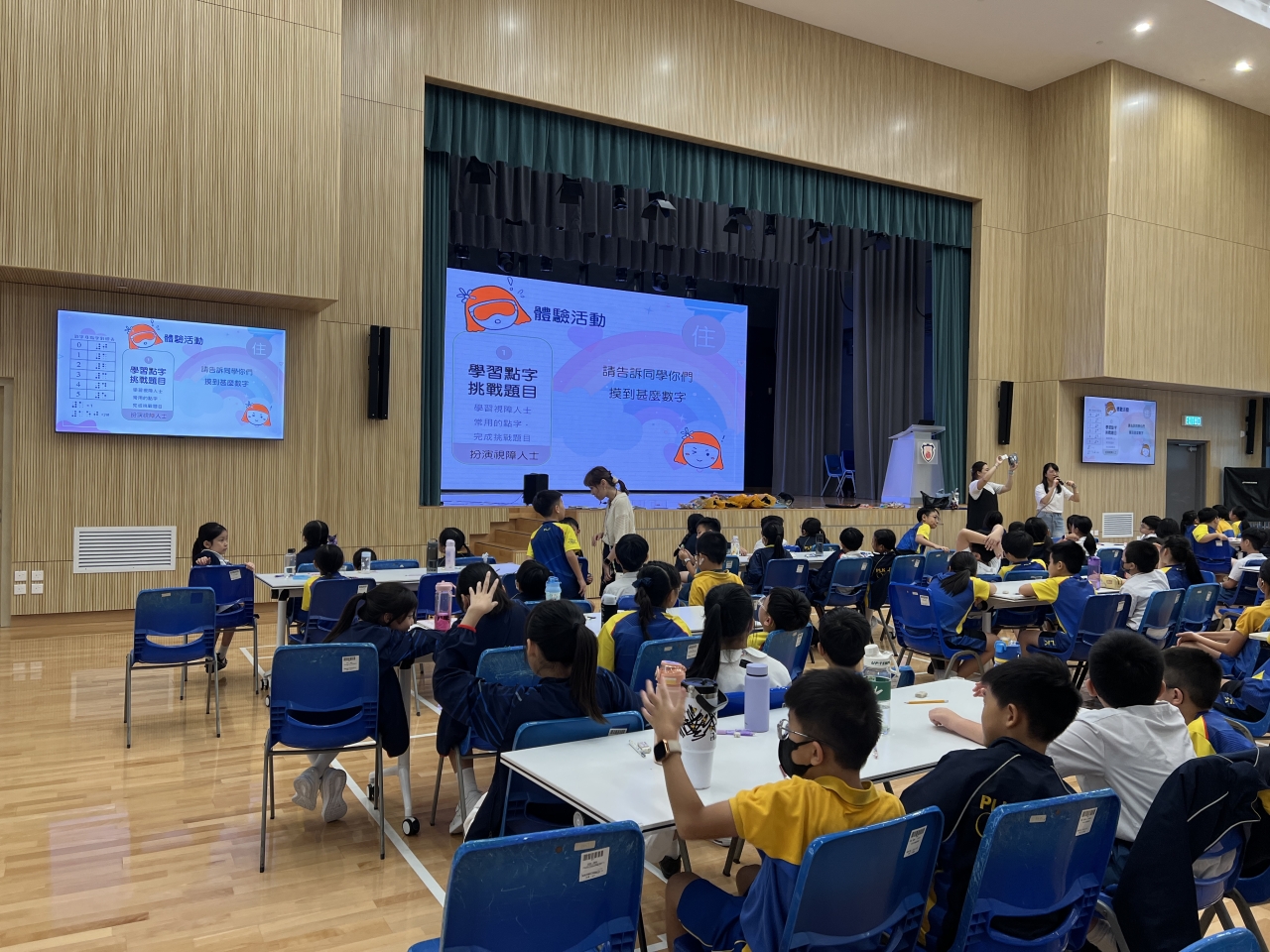 在活動中,四年級及五年級同學透過不同的遊戲,體驗長者及殘疾人士的需要,學習在生活中幫助有需要的人。