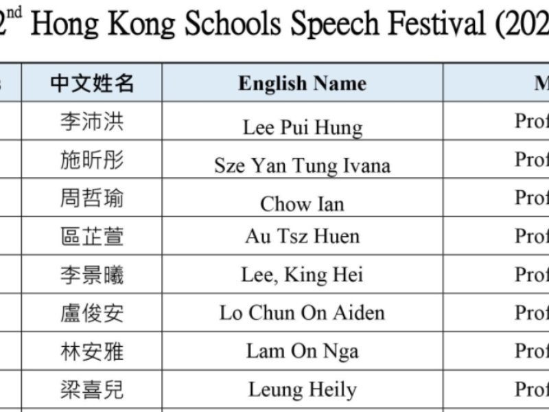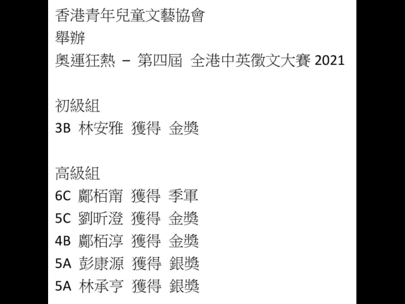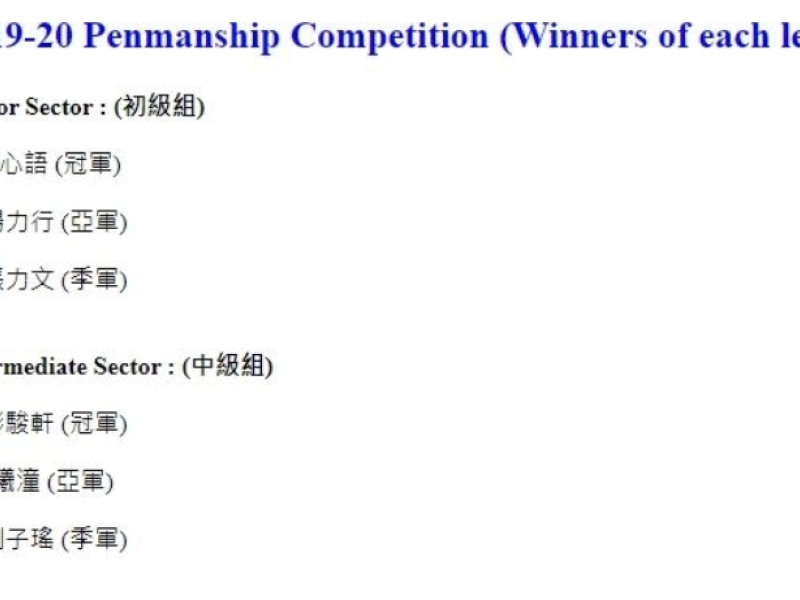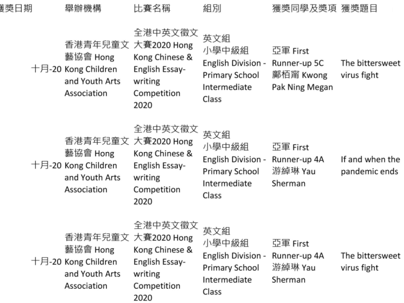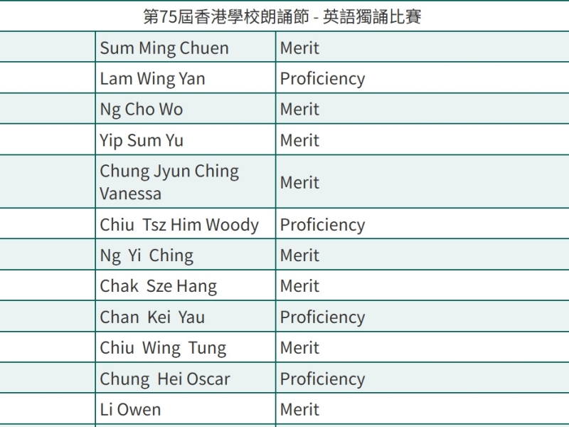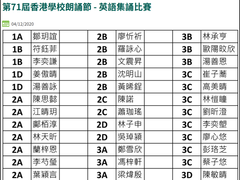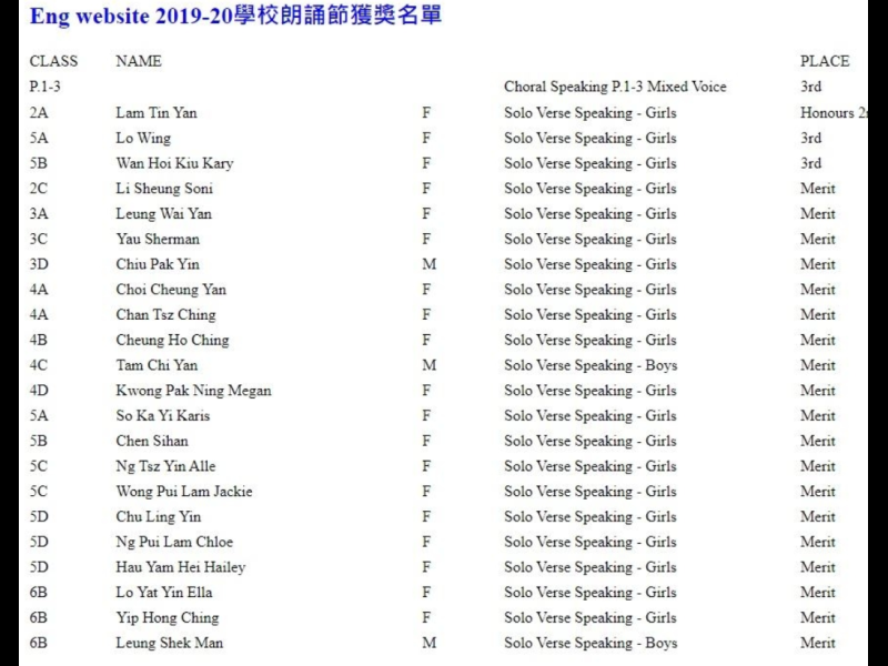 2019-20學校朗誦節獲獎名單