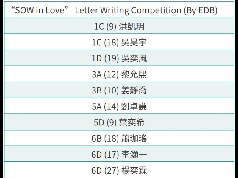“SOW in Love” Letter Writing Competition (By EDB)