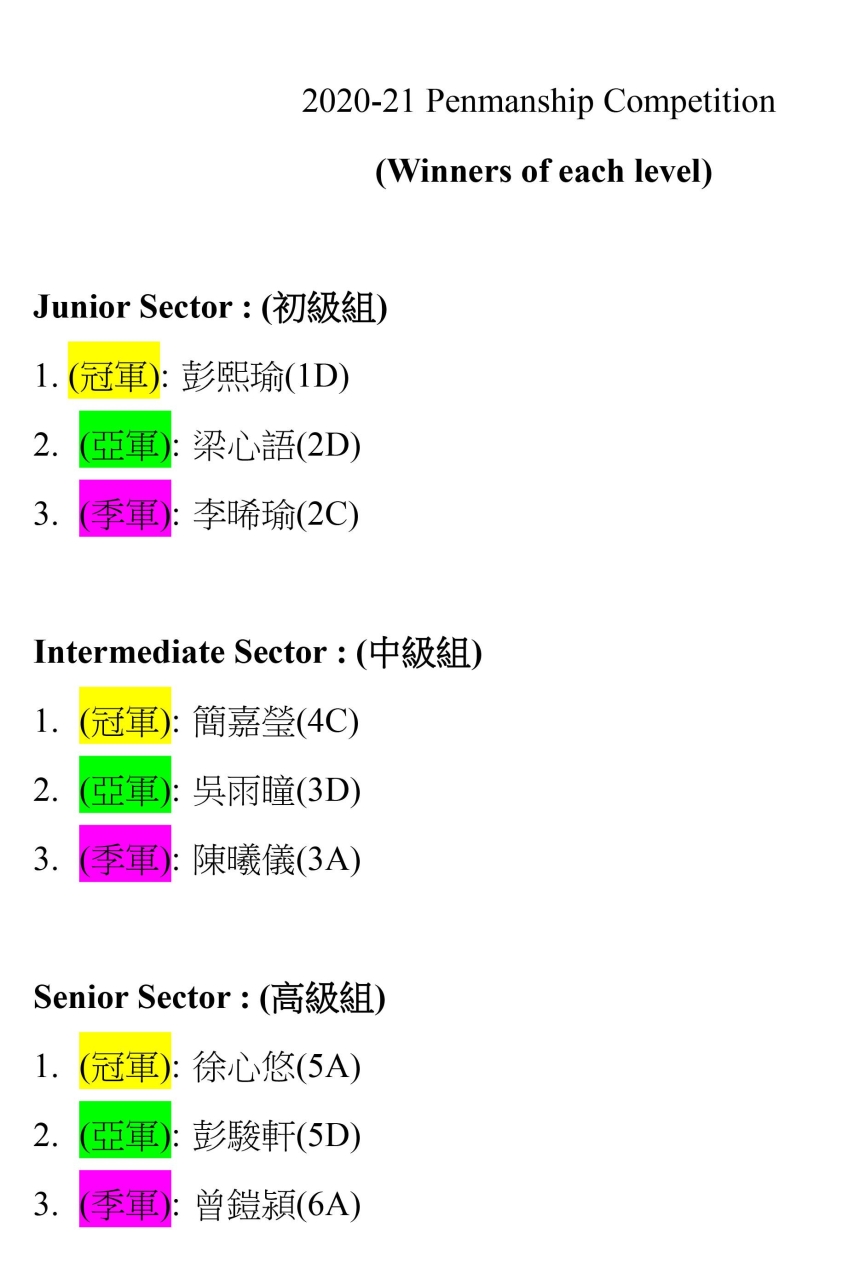 2020-2021 Penmanship Competition