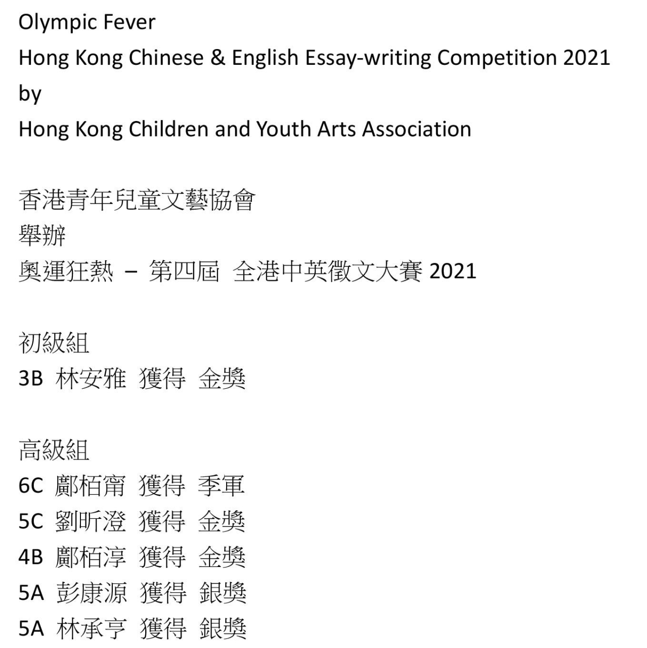 Olympic Fever HongKong Chinese_English Essay-writing Competition